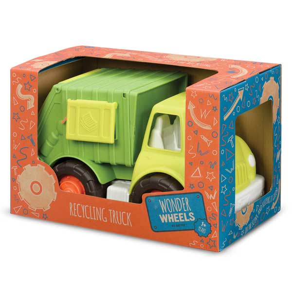 Recyclable Materials: This toy truck is made from recyclable plastic, and the packaging is 100% recyclable too!