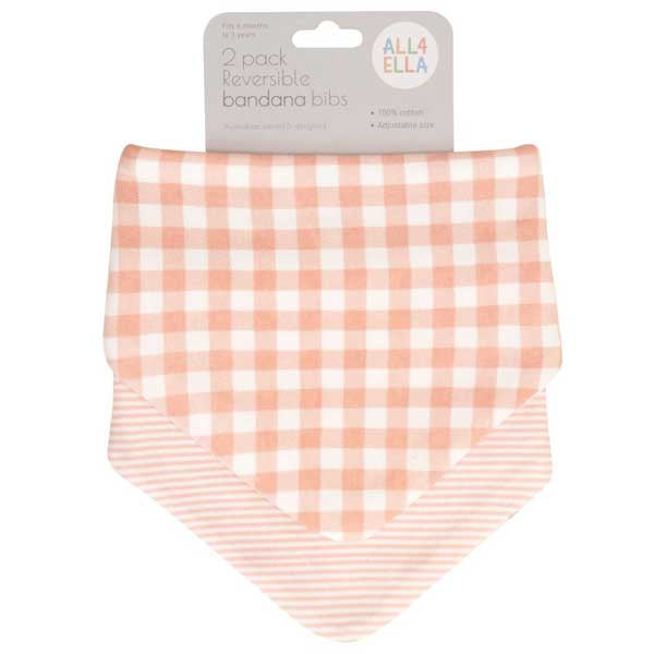 All 4 Ella - Reversible Bandana Bibs 2 Pack - Gingham Strawberry