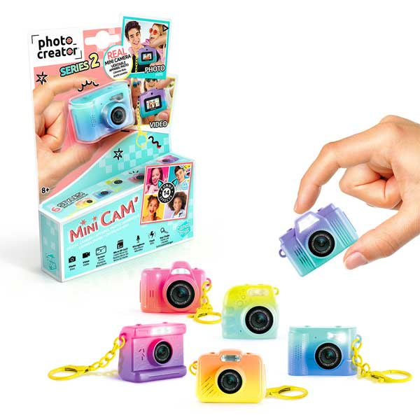 A trendy mini bicolour digital camera to take with you wherever you go! Clip it on your bag with the key-ring and take pictures and videos anywhere, anytime! Includes a mini screen, colour filters and internal memory. 6 different styles to collect.