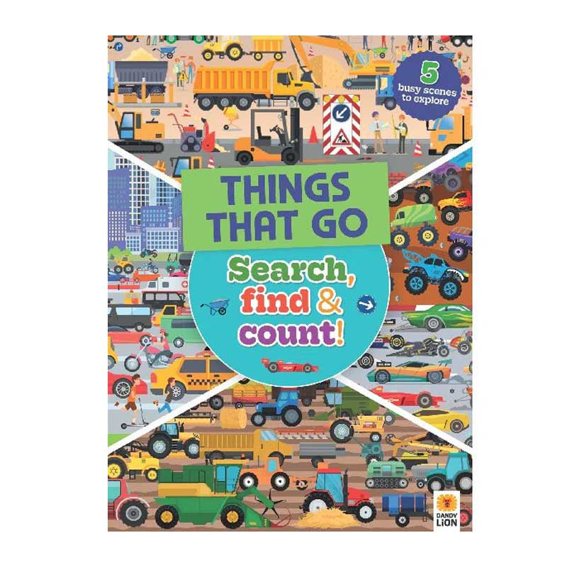 It’s time to whizz off and discover a world of things that go, whether in a busy building site, up in the air or out and about in the city. How ,many trains can your count? Which Vehicle is the odd one out on the building site? Have fun looking for the hidden objects in the busy scenes.